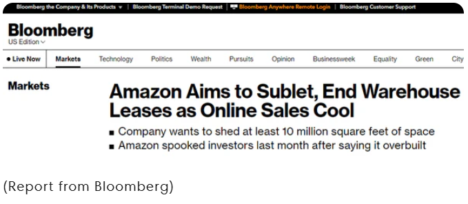 Excessive Expansion! Amazon's warehouse is severely overstocked.and to terminate multiple warehouse leases, Amazon has to sell alarge number of warehouse pallets